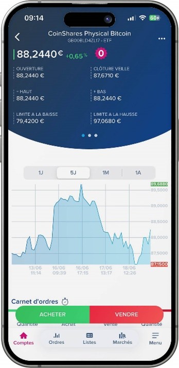 BoursoBank permet ainsi à ses clients d’investir en toute sécurité dans ces actifs de nouvelle génération, sans frais de courtage à l’achat, via les produits CoinShares. Ces produits offrent une exposition aux principales capitalisations du marché des cryptoactifs, telles que Bitcoin, Ethereum, XRP, Solana et Cardano, accessibles directement depuis leur compte-titres ordinaire.
