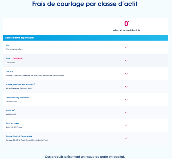 Détail de l'offre et des frais de courtage par classe d'actif disponibles sur BoursoBank.com