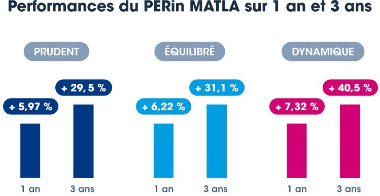 Plan d’Epargne Retraite Individuel le moins cher du marché1, le PERin MATLA de BoursoBank affiche pour l’année 2025 des performances comprises entre +3,1 % et +7,3 % en Gestion Pilotage Horizon Retraite, et a servi un taux moyen de 3,89 %3 sur le fonds Sécurité en euros.